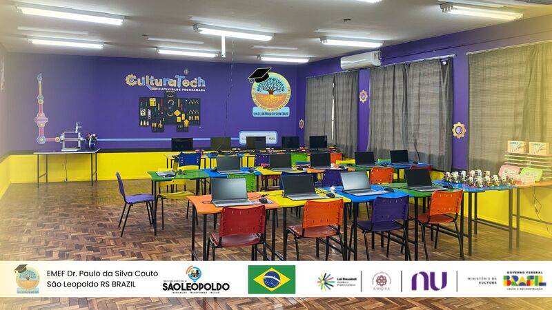 The "Sala Criativa CulturaTech" (CulturaTech Creative Room, in English) is a space dedicated to strengthening Maker Culture in the community and the region. In addition to the technological structure (Sala Criativa), the "CulturaTech: Programmed Creativity" project promotes a training program for students, teachers and the local community throughout this school year, culminating in December with a large exhibition open to the public in the region. The "Sala Criativa CulturaTech" can also be understood as an acceleration and innovation program at the school (specifically the Doutor Paulo da Silva Couto Municipal Elementary School, in the city of São Leopoldo, in the extreme south of Brazil). This initiative is sponsored by Nubank.