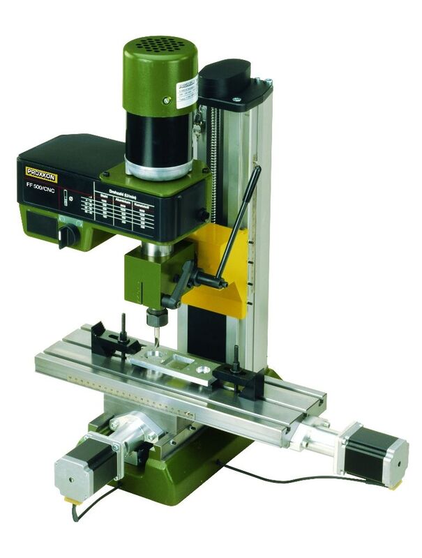 400W. 50/60Hz. Spindle speeds 200 - 4,000rpm. Throat 125mm. Sleeve stroke 30mm. Column 120 x 100 x 430mm. Table 400 x 125mm. Transverse range vertical (Z-axis) 220mm, transverse (X-axis) 310mm, depth (Y-axis) 100mm. Dimensions: H = 750mm, W = 550mm, D = 550mm