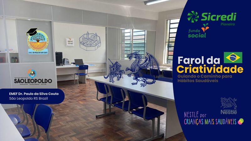 The Farol da Criatividade (The Lighthouse of Creativity, in English) is a 3D mini factory, the creative and technological center, of the Escola Municipal de Ensino Fundamental Doutor Paulo da Silva Couto, located in the city of São Leopoldo, in the southern region of Brazil. We work with Elementary School classes, escalating to Early Childhood Education classes (4 and 5 years old). Currently, we produce modern board games with card games and literary books (such as children's sensory books, pop-up books, manga and comic books). We are part of the Nestlé for Healthier Kids program, which represents a combined effort to support parents and caregivers on their journey to raise healthy children. We promote 5 healthy habits: