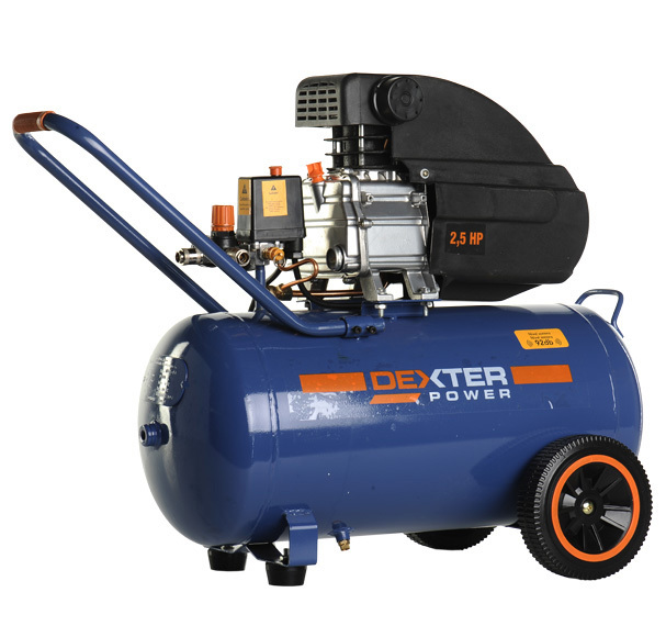 Compresor profesional de 2,5 CV, 50 litros de capacidad, 8 bares de presión, 205 l/min, 2500 rpm y 35 kg de peso. Para pintar a pistola, lacados, clavado neumático y tapizados.