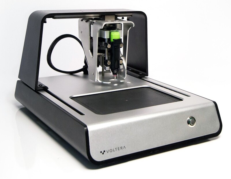 It is equipped with a heated platform used to cure conductive ink and to reflow solder paste.
